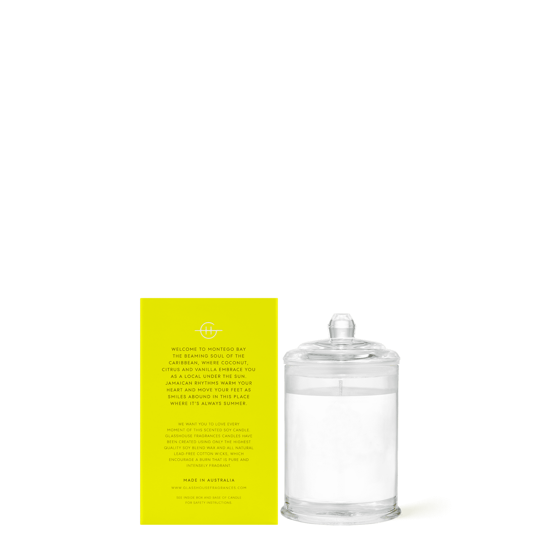 Welcome to Montego Bay the beaming soul of the Caribbean, where Coconut, Citrus and Vanilla embrace you as a local under the sun. Jamaican rhythms warm your heart and move your feet as smiles abound in this place where it's always summer.